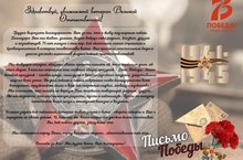 9 мая мы отмечаем наш главный общий праздник – День Победы. Этот великий праздник – символ мощи, силы духа и величие русского солдата, защитившего мир на всей земле. Я понимаю, что письма не вернут Вам погибших товарищей, родных, друзей… Но я надеюсь, что они принесут радость, пусть и небольшую. Пусть на минуту потеплеют ваши глаза и отступят болезни и возраст.