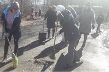 Весь коллектив школы вышел сегодня на уборку школьной территории.