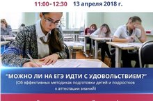 13 апреля 2018 года с 11.00 до 12.30 состоится Республиканское родительское интернет собрание на тему: "Можно ли на ЕГЭ идти с удовольствием?". Речь пойдет об эффективных методиках подготовки детей и подростков к аттестации знаний.