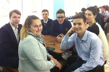 Учащиеся 11 класса за игрой «Что? Где? Когда?». Пожелаем им удачи, сноровки и везения!