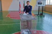Директор школы 28 Леонид Сапаргалиевич Муратов проголосовал на своем избирательном участке.