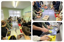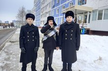 Учащиеся 7В класса Ахметзянов Расул, Буслаев Андрей и Файдров Нурислам приняли участие в акции «Блокадный хлеб», организованной в микрорайоне №23.
