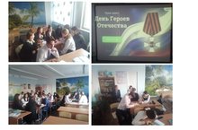 Сегодня, 9 декабря в музее школы проведено мероприятие, посвященное Дню героя. Ученики 8б, 8 г и 6г класса-Роман, Разиль и Риана читали стихи Евгения Евтушенко, Никифора Тукмачева о войне. Выступила руководитель музея Габбасова Р.Х. Учитель истории Лутфуллин Р.Р. рассказал о работе в летний период с поисковой группой" Нефтехимик" в раскопках по установлению личности погибших воинов.