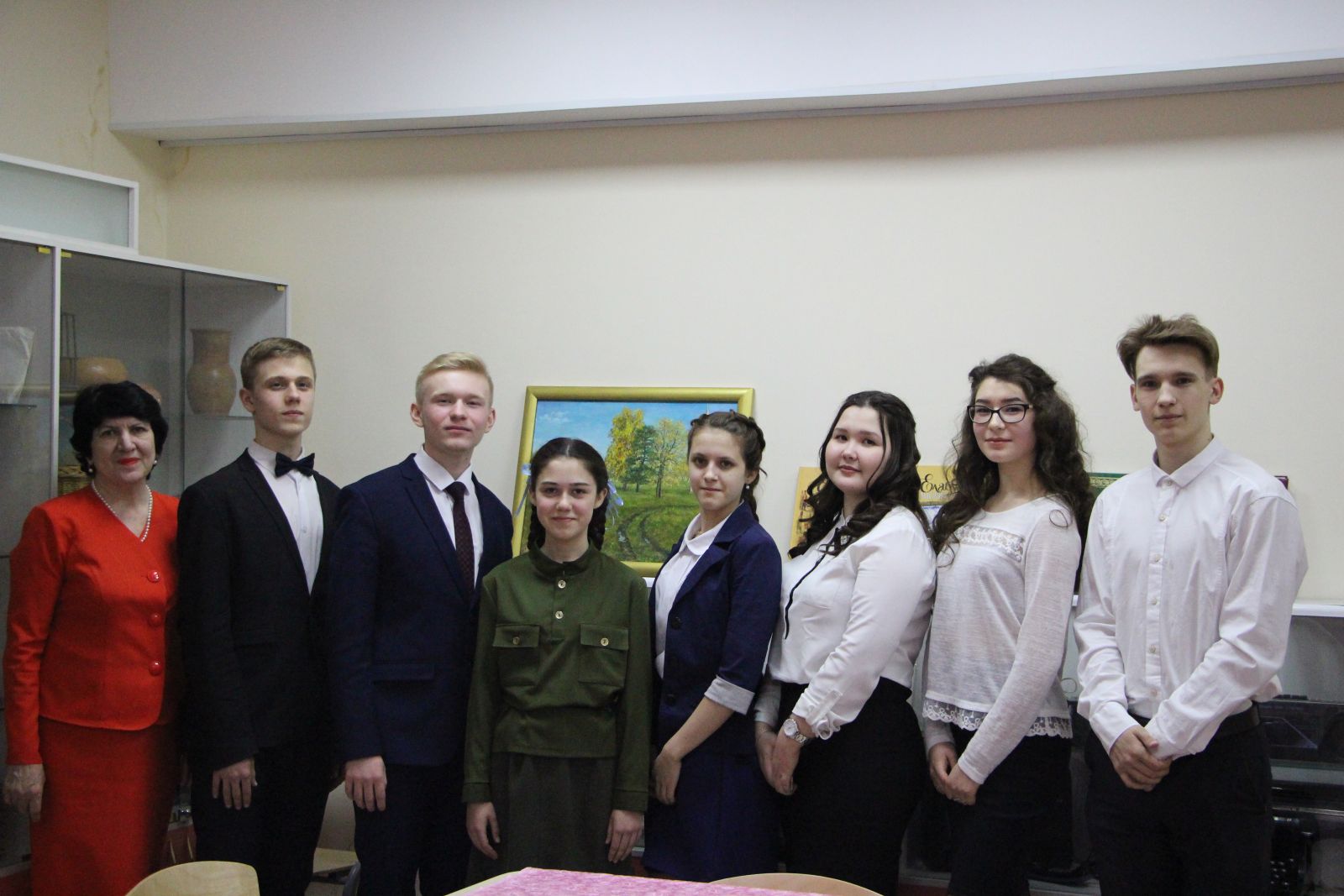 Мероприятие продолжалось в музее школы за круглым столом, где было организовано чаепитие с победителями конкурса (с учениками, занявшими первое место) и ветераном войны Сахабутдиновой С.Г. Она рассказала поучительную историю блокадного Ленинграда и пожелала мирного неба над головами всем присутствующим.
