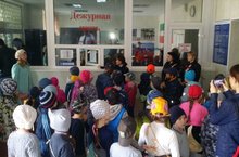 Затем ребята направились в дежурную часть, где им представилась возможность понаблюдать за работой дежурного: посмотреть, как он принимает звонки, вызовы по радиостанции и отвечает на вопросы граждан, которые обращаются к нему за помощью.