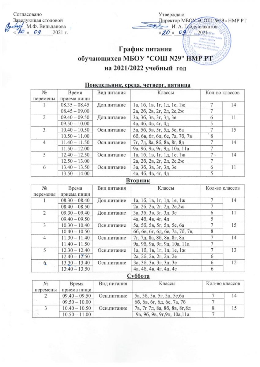 график питания на 2021-2022 учебный год