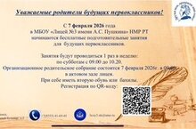 Уважаемые родители будущих первоклассников! С 7 февраля 2026 года в нашем лицее начинаются бесплатные подготовительные занятия для будущих первоклассников. Занятия будут проводиться 1 раз в неделю: по субботам с 09.00 до 10.20. При себе иметь вторую обувь или бахилы. Регистрация по ссылке: docs.google.com/forms/d/e/...