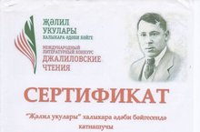 Сертификатами участников муниципального этапа Международного литературного конкурса чтецов "Джалиловские чтения" награждены: ученица 2"Б" класса Хузина Алина в номинации "М. Джалиль на русском" (педагог Голованова С.Д.) и ученица 6"Б" класса Гущерева Карина в номинации "Джалиль на языках народов мира" (педагог Павлова Е.Ю. и Сазонова Л.Ю.).