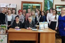 Сегодня в читальном зале библиотеки прошла встреча учащихся 9А класса с первостроителем города Нижнекамска Халиуллиным Х.Г. и писательницей Юдиной А.Ф. Встреча прошла в формате "Круглого стола", в рамках проекта "Улицы моего города". Гости рассказали ребятам о том, как строился наш город, о людях, которые его строили.