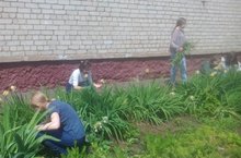 Трудовой лагерь повторно взялся за обработку цветчных клумб.
