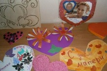 В школе была организована выставка , посвященная Дню матери. Все работы были выполнены в форме сердца.