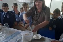 Ученики 3Б класса решили вырастить кристаллы в "домашних" условиях. Выращивание кристаллов увлекательный процесс основанный на создании насыщенного раствора соли или сахара. Ребята взяли сахар и приготовили сироп в соотношении примерно 1:3, довели до кипения и налили в банку. Создали затравку: шпажку облили сиропом, обваляли в сахарном песке и опустили в банку с сиропом. Накрыли банку от пыли и поставили на полку. Двигать банку нельзя. В конце дня на шпажке уже образовались кристаллики. Для получения крупного кристалла будем доливать свежий сироп каждый день. Для того, чтобы получить цветные кристаллы, можно в сироп добавить пищевой краситель. Чтобы кристалл не разрушился, мы покроем его бесцветным лаком. Детям опыт понравился, они решили вырастить кристаллы в домашних условиях. Подготовить условия для выращивания кристаллов можно только под присмотром родителей, так как работать приходится с кипятком. Удачи вам, ребята!