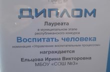 В Центре молодежных инициатив "Ковер" состоялось награждение победителей и участников муниципального конкурса "Воспитать человека". Поздравляем заместителя директора по воспитательной работе Ельцову Ирину Викторовну - лауреата конкурса!