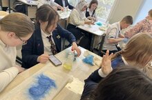 У лицеистов 8В класса прошел интегрированный урок, на котором дети узнали об истории крестьянской зимней обуви - валенок. Урок проводился совместно с ДК «Мирас». Преподаватель Дома культуры Ольга Дмитриевна Петрянкина научила лицеистов валять обувь. Валенки получились разных цветов. Восторгу ребят не было предела!