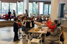 Учащиеся школы поздравили ветеранов с наступающим праздником - Днем Победы. Со словами благодарности за мирное небо над головой они преподнесли ветеранам памятные подарки от городских властей.