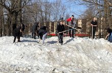 Трудовой десант по уборке снега со школьного двора 11.04.2022