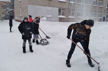 Вооружившись лопатами, дружный десант школьников берется за дело. Учащиеся школы помогли расчистить заснеженные участки вокруг школы. Работали дружно, слаженно, с улыбкой!