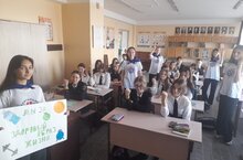 В 7 «В» классе наши активисты - члены движения СМС-дети провели Урок здоровья. В ходе урока были обсуждены вопросы, связанные с ведением здорового образа жизни, правильного питания, важности соблюдения режима дня. Символическим стало подвязывание зеленых лент - символа Здорового образа жизни.