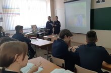 Обучающиеся 9 «В» класса Гарипова Эльвина и Иванова Варвара в рамках школьного конкурса «Юный учитель», приуроченного к Году педагога наставника, провели урок основ безопасности жизнедеятельности в 8 «В» классе.