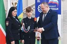 Поздравили ребят заместитель Главы Нижнекамского муниципального района Александр Умников и Почетный гражданин г.Нижнекамска, Советник Главы Нижнекамского муниципального района, председатель совета ветеранов войны, труда, вооруженных сил и правоохранительных органов Григорий Китанов. По традиции руководитель Молодой Гвардии Нижнекамска Рустем Салахутдинов вручил всем памятные подарки от партии Единая Россия.
