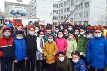 Показательное выступление пожарной бригады - "Спасение человека с 4-го этажа школы во время пожара". 03.05.2019