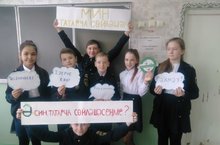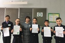 5в сыйныфы "Мин татарча сөйләшәм" акциясе кысаларында татар телендә проектлар яклый