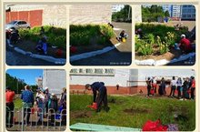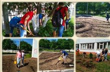 Главное занятие ребят ТОШ на пришкольном участке в жаркие дни - это уход за клумбами, полив. 21.06.2018