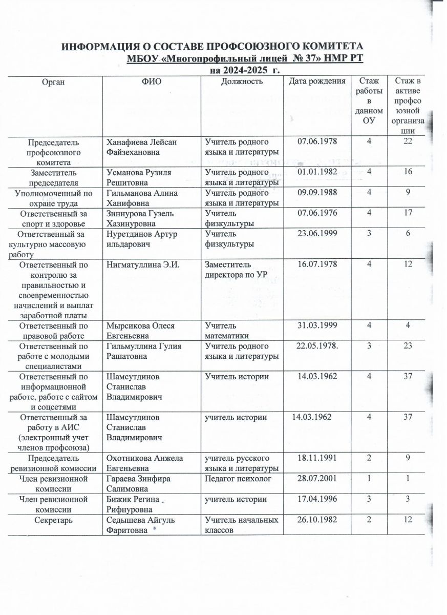 Председатель первичной профсоюзной организации-Ханафиева Лейсан Файзехановна, сотовый телефон 89874155403, рабочий телефон: 8-885-544-87-93, электронная почта:leisanka-han@mail.ru