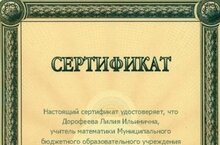 Учитель математики Дорофеева Лилия Ильинична получила сертификат квалифицированного пользователя сайта uztest.ru.