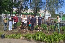 Отдыхающие лагеря труда и отдыха занимаются благоустройством территории школы и посадкой цветов.
