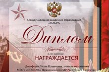 Поздравляем учителя математики Дорофееву Лилию Ильиничну, занявшую II место во Всероссийском конкурсе "Я расскажу вам о войне..." в номинации "Лучшая методическая разработка".
