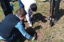 Обучающиеся 7Б класса высадили саженцы елей на пришкольном участке, срезали завядшие цветы и привели участок в порядок.