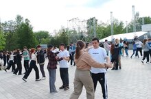 В преддверии Дня Победы обучающиеся нашей школы готовятся к участию в праздничном вальсе. Репетиции проходят на площади около Дома народного творчества.