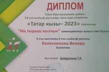 Участники конкурса "Татар егете-2023" и "Татар кызы-2023" Аскаров Адель, Колесникова Венера, Шайхутдинова Рузиля получили дипломы в номинациях. Участников подготовили учителя татарского языка Шайдуллина Танзиля Рахимулловна и Сабирова Ралена Даимовна.