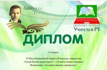 Поздравляем Лойченко Екатерину - дипломанта первой степени Республиканского открытого конкурса творчества "Тукай в наших сердцах" в номинации "Художественное творчество" (учитель Сахабиева Аниса Рафкатовна).