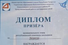 Поздравляем Дорофееву Полину - призёра муниципального этапа республиканской олимпиады школьников по литературе (учитель Гимадеева Ляля Мунировна).