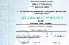 Учитель русского языка и литературы Сергеева Ирина Юрьевна приняла участие в Республиканском конкурсе ораторского мастерства "Speaking Contest".