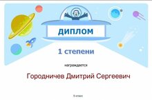 Поздравляем обучающегося 5А класса Городничева Дмитрия, получившего диплом 1 степени Международной дистанционной олимпиады "Олимпиада - онлайн - Зима 2022" по предмету математика (учитель Миннегалиева Раиля Хамитовна).