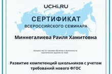 Поздравляем учителя математики Миннегалиеву Раилю Хамитовну - победителя Всероссийской дистанционной олимпиады руководителей и педагогов образовательных организаций "Особенности работы учителя математики в образовательной организации в условиях реализации ФГОС". Также Раиля Хамитовна получила сертификаты проекта Учи.ру как участник Всероссийского семинара по теме "Развитие компетенций школьников с учётом требований ФГОС" и "Мастер-класс. Подготовка к ОГЭ по математике :разбор сложных заданий".