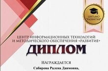 Поздравляем учителя родного языка Сабирову Ралену Даимовну - победителя Всероссийской Олимпиады руководителей и педагогов образовательных организаций "Воспитательный процесс в современной школе" в рамках научно-практической конференции "Теория и методика воспитательной работы в шуток" (Центр информационных технологий и методического обеспечения "Развитие").