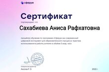 Учитель родного языка Сахабиева Аниса Рафкатовна прошла обучение по программе "Сферум как современный цифровой инструмент для образовательного процесса: практика использования в работе учителя".