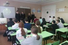 В рамках профориентационной работы перед учащимися 9 класса выступили студенты колледжа юстиции.