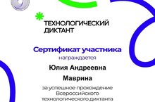 Учитель биологии Маврина Ю.А. успешно прошла Всероссийский технологический диктант.