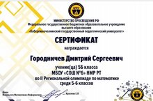 Обучающиеся школы №6 Городничего Дмитрий и Галиева Альфия приняли участие во II Региональной олимпиаде по математике.