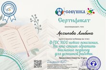 23 июня педагог-психолог Архипова А.Р. прослушала вебинар на тему "ФГОС НОО нового поколения. На что стоит обратить внимание педагогу для успешной работы".