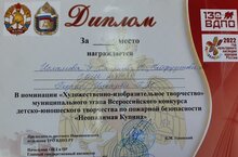Дипломом третьей степени муниципального этапа Всероссийского конкурса детско-юношеского творчества по пожарной безопасности "Неопалимая Купина" награждёны ученицы 3А Исламова Э., Смирнова В., Сайфудинова М..( учитель Ильязова Гульназ Наилевна).