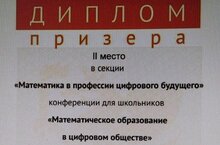 Поздравляем Махмутову Яну - призера второй степени Республиканской конференции для школьников "Математика в профессии цифрового будущего".
