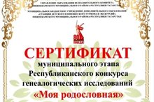 Поздравляем обучающегося 6А класса Хасаншина Булата, получившего сертификат участника муниципального этапа Республиканского конкурса генеалогических исследований "Моя родословная" (учитель Сабирова Ралена Даимовна).