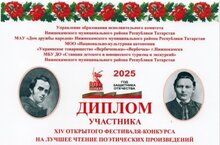 Диплом участника XIV открытого фестиваля-конкурса на лучшее чтение поэтических произведений в честь Тараса Шевченко и Габдуллы Тукая "Слово звучащее, слово живое. Под знаменем Победы" получил ученик 6Б класса Сабиров Аяз (учитель Зиганшина Венера Гависовна).