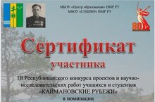 Обучающаяся 9В класса Белькова Ангелина получила сертификат участника II Республиканского конкурса проектов и научно-исследовательских работ учащихся и студентов "Каймановские рубежи" (учитель Сабирова Ралена Даимовна).
